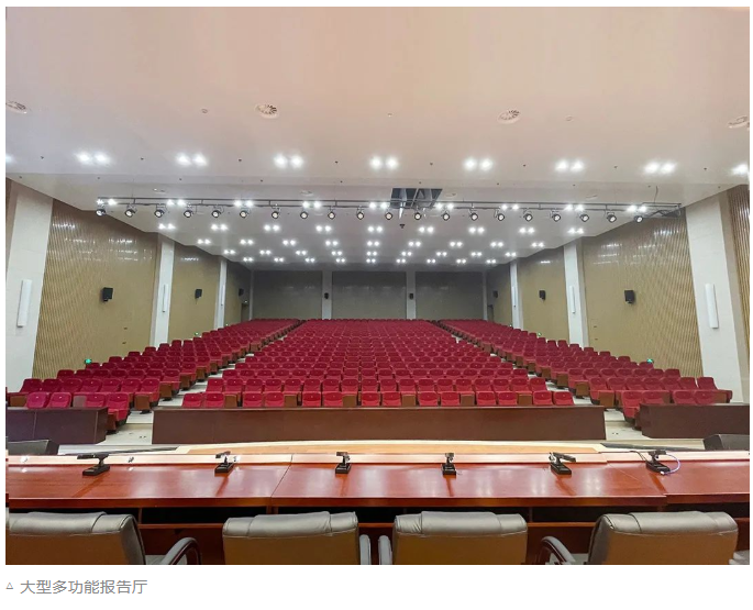 大型多功能報告廳可容納600余人,空間較大。要求多功能報告廳可滿足各類培訓、學術報告、研討交流會等大中型會議及大中型文藝演出等多種使用需求,能滿足會議討論、發言等語言擴聲使用功能,確保整套擴聲系統聲音飽滿通透,人聲清晰自然。