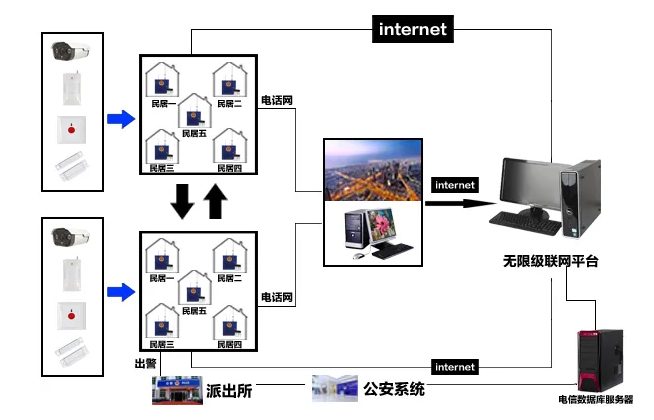 周邊防范:來訪者通過別墅門口機呼叫,業主確認后開門,其他非法入侵都會引起警報(別墅門口機和大門紅外對射關聯,開鎖后撤防,上鎖后,自動布防)。