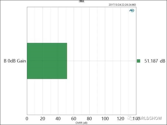 需要指出的是,CMRR的測(cè)量值,容易受到測(cè)試激勵(lì)信號(hào)電平和調(diào)音臺(tái)增益設(shè)置的影響。三張調(diào)音臺(tái)的實(shí)測(cè)參數(shù)與官方資料參數(shù)有所出入,主要是因?yàn)闇y(cè)試電平和調(diào)音臺(tái)的增益設(shè)置不一致造成的。上圖可見(jiàn),三款調(diào)音臺(tái)的共模抑制比的差別非常明顯。
