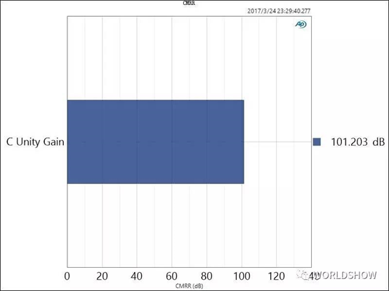 共模抑制比是指差分放大器對(duì)同時(shí)加到兩個(gè)輸入端上的共模信號(hào)的抑制能力,代表了平衡放大電路(由差分電路組成)的平衡度,當(dāng)完全平衡時(shí),信號(hào)傳輸過(guò)程中感應(yīng)到的外界噪音可以得到最大的抑制。這個(gè)指標(biāo)的數(shù)值越高越好,一般能達(dá)到60 dB已經(jīng)很不錯(cuò)了。