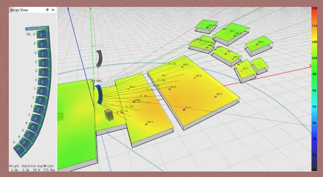 在正式進場安裝之前,我們提前通過Resolution建模軟件仔細分析模擬了揚聲器安裝點位、角度、聲場覆蓋等,為現場安裝及調試提供了更為具體的基礎和更多的時間。實際安裝過程中,揚聲器在聲學結構GRG上3D建模定位一次安裝完成,實現了精準的覆蓋和良好的線陣耦合,為后續調試打下堅實的基礎。最終調試的結果和前期分析模擬完全吻合,