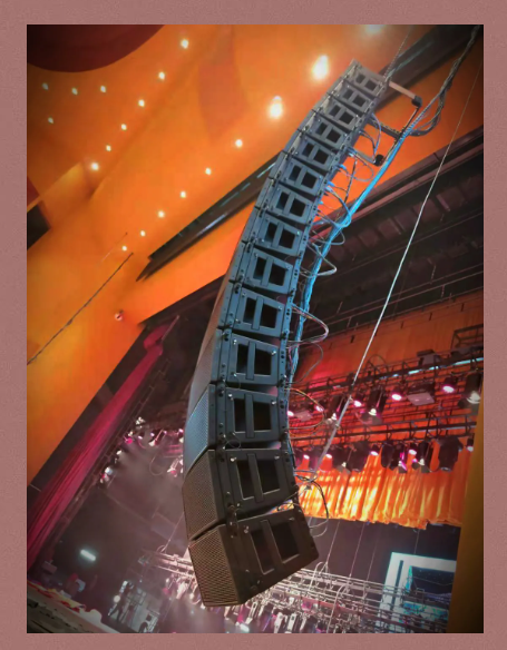 主擴系統采用左中右三組線陣列揚聲器結合覆蓋的方式,其中左右聲道每組吊掛14只
