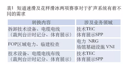 對于音頻線纜的敷設,由于首都體育館初修建于1968年,管線橋架設計相對復雜繁瑣,場館1層至4層垂直橋架沒有完全貫通,4層的水平橋架也沒有聯(lián)通,大大增加了音視頻傳輸線纜敷設的難度,同時大大增加了音頻線纜的敷設長度。因此,在現(xiàn)場的音視頻插座箱與四層音控室之間,采用光纜及中繼設備進行傳輸,包括調音臺接口箱、交換機、音頻光端機等。通過數(shù)模結合的傳輸方式,解決了信號傳輸線纜過長的問題,并大大增加了信號傳輸?shù)目煽啃耘c安全性,滿足了奧運賽事期間不同賽事的需求,2022年北京冬季奧運會組委會技術組可根據(jù)不同使用場景進行切換。