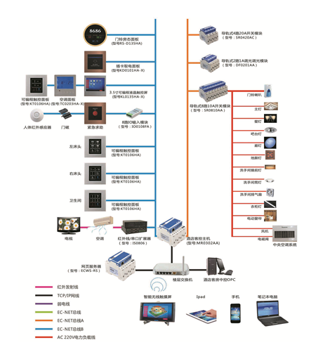 基本功能:照明開關(guān)、電動窗簾開合、插座控制、空調(diào)本地控制、空調(diào)聯(lián)網(wǎng)控制、背景音樂控制、模式控制、房態(tài)監(jiān)視。