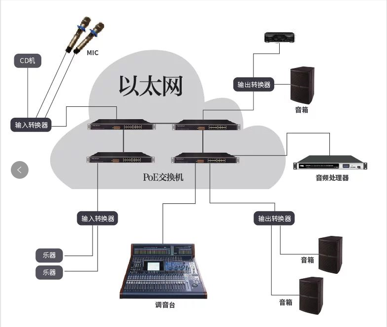 Dante數(shù)字音頻傳輸技術(shù),是一種專業(yè)、無壓縮的、基于3層的IP網(wǎng)絡(luò)的新一代網(wǎng)絡(luò)音頻傳輸技術(shù)。它和傳統(tǒng)的音頻傳輸有著很大的區(qū)別,它僅使用一條網(wǎng)線就可以傳輸數(shù)字音頻、供電和控制同時(shí)進(jìn)行,省去了極大的建設(shè)成本,減少了不必要的人力和財(cái)力。