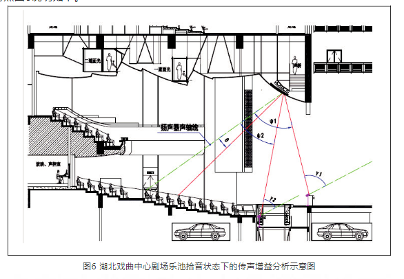 無(wú)論建聲設(shè)計(jì)還是擴(kuò)聲設(shè)計(jì),觀眾席特別是關(guān)鍵區(qū)域的直達(dá)聲和近次反射聲是重點(diǎn)分析的要素。在這一過(guò)程中,對(duì)于樂(lè)池中伴奏的拾音,處于揚(yáng)聲器覆蓋區(qū)或邊緣上,需要避免聲反饋的產(chǎn)生。