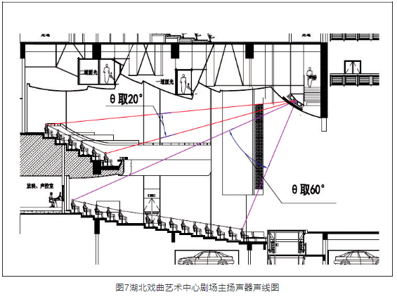 當(dāng)然,眺臺(tái)下空間與觀眾廳池座區(qū)的聲耦合也需引起注意,這里主要是依照聲學(xué)設(shè)計(jì)規(guī)范掌握好開(kāi)口的深高比。