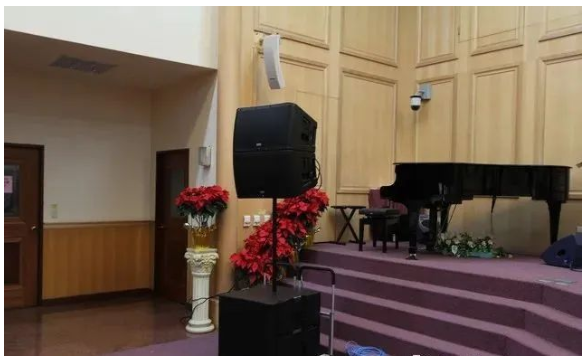 以靠近觀眾的安裝位置發(fā)聲 (2-5米),每一支喇叭負責涵蓋的區(qū)域不大 (通常是3-5排),喇叭把聲音打向會眾,就吸收掉。把人當吸音體,減少二次反射 。