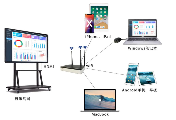 ⑥無線投屏設(shè)備:其實(shí)是APP軟件投屏的一種衍生,將接收端作為一個硬件盒子,信號端則有USB小電子設(shè)備和APP軟件的兩種方式。AWIND奇機(jī)專注無線投屏16年,無線投屏,我們是專業(yè)的!