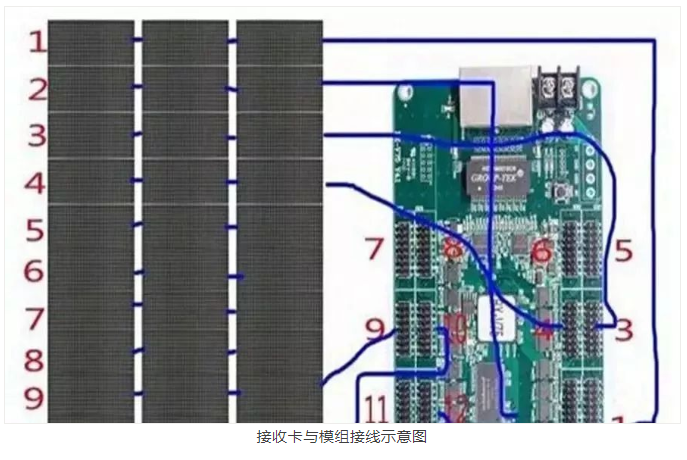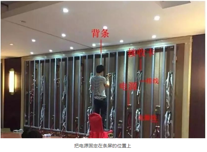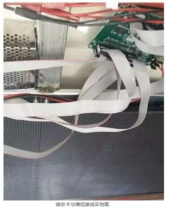 從配電室到LED顯示屏配電柜的電纜在安裝屏幕之前就必須布置好,電源接好后裝控制卡,控制卡這里用的是同步接收卡。整個電源和控制卡的布置,LED顯示屏出廠都是有《電源及系統(tǒng)布線圖》的,只要嚴格參照圖紙走線就不會出錯。一般工程師自己根據電源和卡的數(shù)量也可以估算出走線方式。