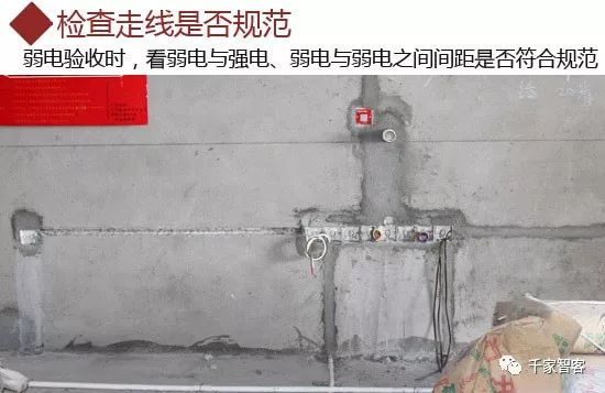 前面已經(jīng)提過,弱電對電波非常敏感,抗干擾能力差,所以光靠護套線管保護還不能完全削減其與鄰近電波的反應。所以在鋪設電路時,弱電與強電、弱電與弱電之間如果水平間距過小,很容易造成日后信號互相干擾。驗收的時候注意檢查線管距離是否符合規(guī)定。