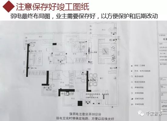 弱電驗收的過程中,如果一些線路沒有標記用途的,可以要求工人給標記上。同時驗收完成之后,為防止施工過程中的對原設計圖紙進行了改動,需要要求設計師重新畫出最終設計布線圖,業(yè)主注意保存好,以便今后的保護與維修。