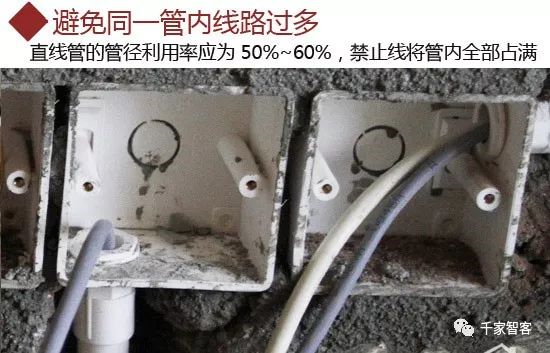 敷設時應視管內(nèi)所穿導線數(shù)量的多少而變化,同一管內(nèi),不宜超過四根,禁止導線將管內(nèi)空間全部占滿。直線管的管徑利用率應為50%~60%,彎管的管徑利用率應為40%~50%。