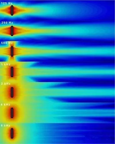 所有傳統的線陣列都是這樣,因為它們在這個范圍內是全指向的。(該系統的水平指向圖形不受垂直指向的影響,水平指向圖形在任何頻率都是全指向的)。