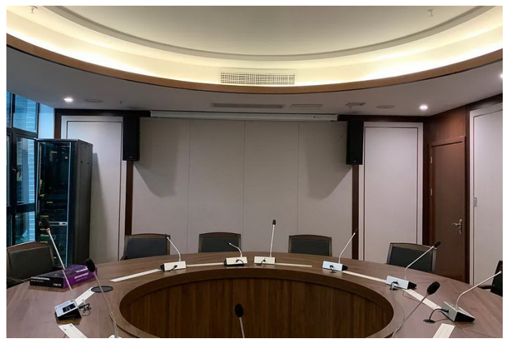 整個工程的擴聲系統安裝完成后,在精確調整指向角度后,聲音達到了甲方認可的效果,系統運行極其穩定,為會議使用時提供清晰、自然的語言擴聲。
