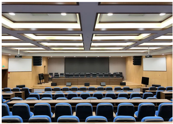 由于房間數量較多,根據每間的使用環境結合客戶需求及產品性能,最終為一層的學術報告廳、數字影像廳等共選用了20只C-208的8 "線性陣列音箱作為主擴聲系統,最大聲壓級高達135dB,所需的傾斜角度也擴張到了最大使用范圍,內部喇叭單元的安裝角度可滿足不同的場地使用需求,搭配C-15S的單15" 低頻音箱,該主擴系統安全穩定,操作簡易,系統結構更科學完善,是大型會議的品質之選。