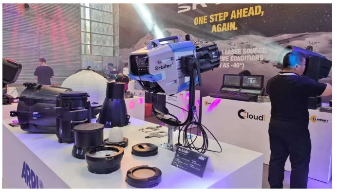 雅江光電充分利用展位空間,打造流線型結構,劃分設置“前臺區”、“ARCTIK展示區”、“SILVER STAR展示區”、“客戶休息區”、“控臺區”五大空間區域。分設“交互式投影展示位”、“頂部燈箱展示位”兩大燈光展示區域。有效展示雅江光電2023主推新品,為觀眾留下深刻印象。
