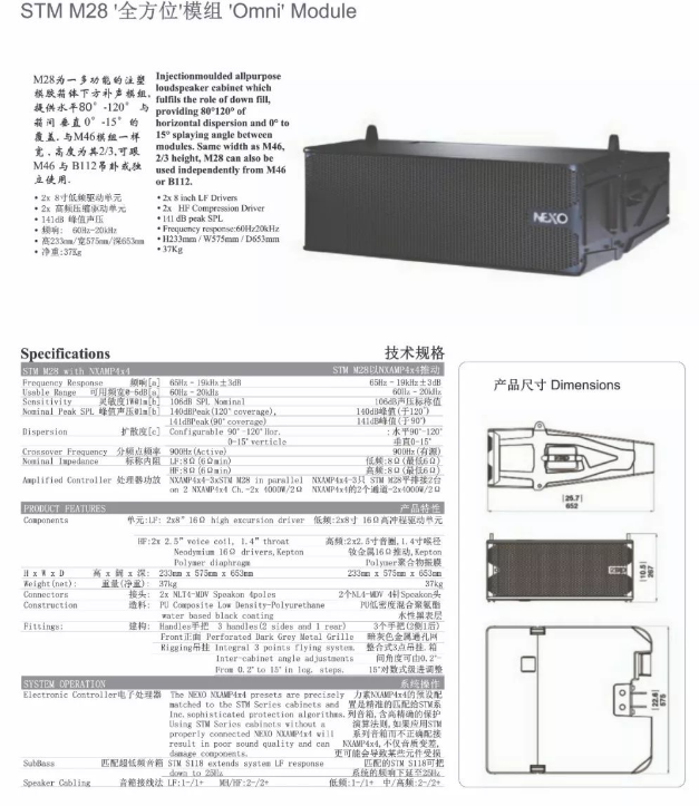 現場空間條件符合吊掛應用,因此,左右部署吊掛各7只STM M28覆蓋全場,使得現場的擴聲非常均勻且清晰度非常高,無論在第一排還是最后一排,都能清楚捕捉到臺上發言人的聲音。左右各2只STM S118作為超低頻補充,并使用NEXO旗下新品NXAMPmk2功放供電,使音質方面表現出色,現場工作人員認真負責,主辦方對此也感到非常的滿意。