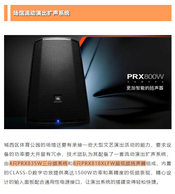 美國 JBL PRX800智能有源揚聲器系統(tǒng)入駐西寧市城西區(qū)體育公園場館