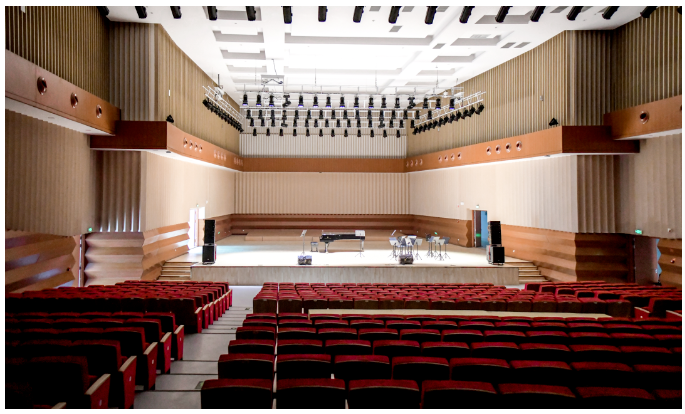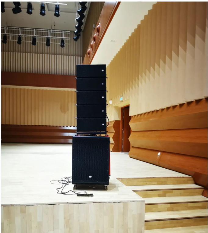 音樂廳音響系統采自意大利進口品牌RCF音響HDL有源線陣列系統,舞臺返聽為兩組ART300有源系列音箱。