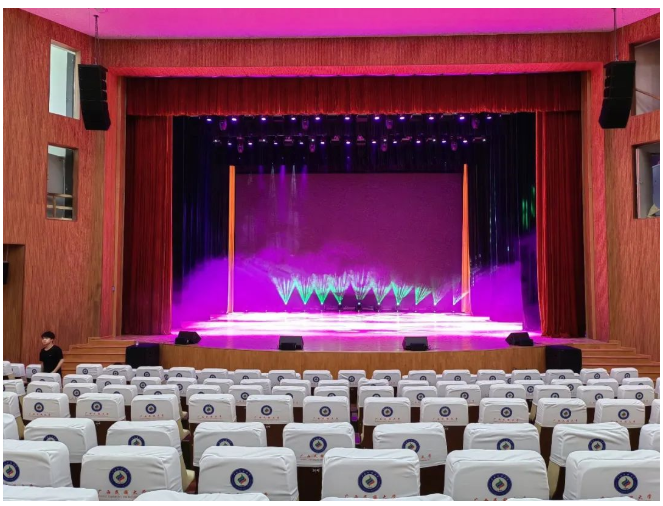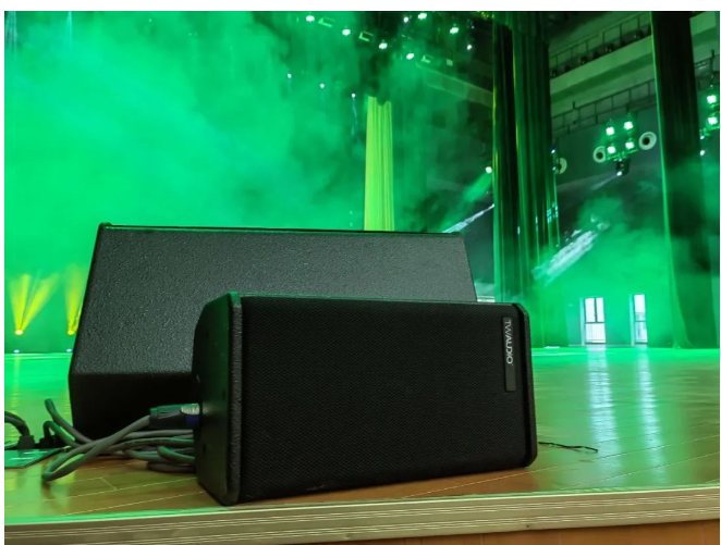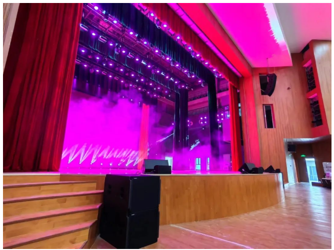 其中主擴(kuò)聲系統(tǒng)采用德國(guó)TWAUDiO VERA20i 雙10寸線陣列揚(yáng)聲器12只以左右兩組吊掛在舞臺(tái)上方,搭配4只 VERA32心形指向超低音揚(yáng)聲器。