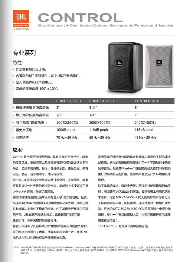 原設計要求擴聲系統一定要高保真,而且要有多聲道效果聲的要求,經過學校老師的專業考察,最終選擇了JBL Control28-1L高保真緊湊型揚聲器,作為一款經典的8寸揚聲器,音質是第一要素,JBL獨有的8寸橡膠邊單元保證了揚聲器足夠的低頻下潛和反應速度,1寸Kapton音圈的高音,安裝在一個耐沖擊性聚苯乙烯HIPS箱體里,能夠還原45Hz-20KHz的頻率響應(-10dB),這個頻寬范圍在8寸揚聲器里絕無僅有。480W的峰值功率輸出能產生118dB peak最大聲壓級。