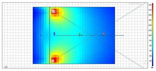樣會造成甚么問題呢?我們用"類似"的條件來模擬看看。(使用ease focus 軟件 ,音箱假設為QSC k10 , 標記點高度采坐姿120cm,溫濕度正常)